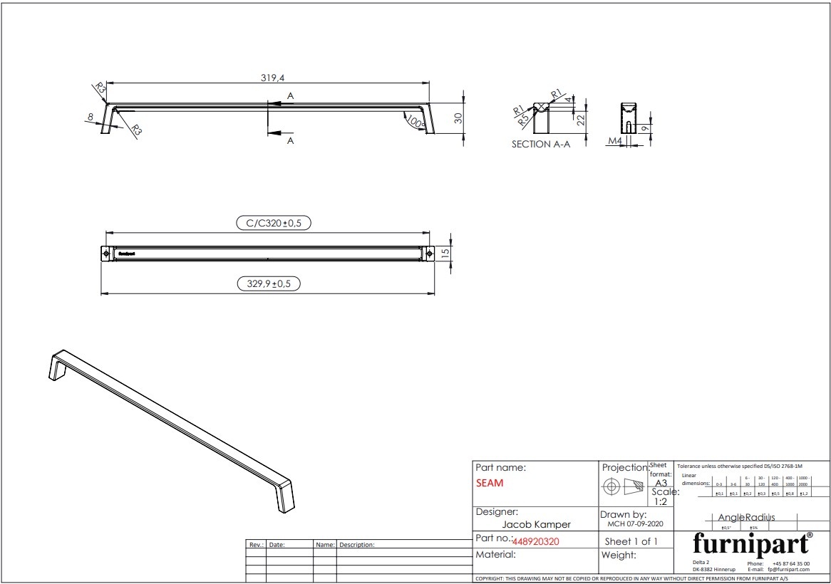 Deze meubelgreep is ontworpen om functioneel en stijlvol te zijn. Het combineert een robuust ontwerp met een subtiele twist. Een strakke, industriële uitstraling wordt harmonieus samengebracht met een zachtere, ronde vorm. De inspiratie komt voort uit industriële ontwerpen, waaronder gegoten machineonderdelen en gereedschappen.