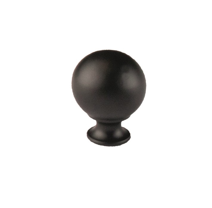 Beschrijving Bolvormige meubelknop uit messing afgewerkt met een mat zwarte coating