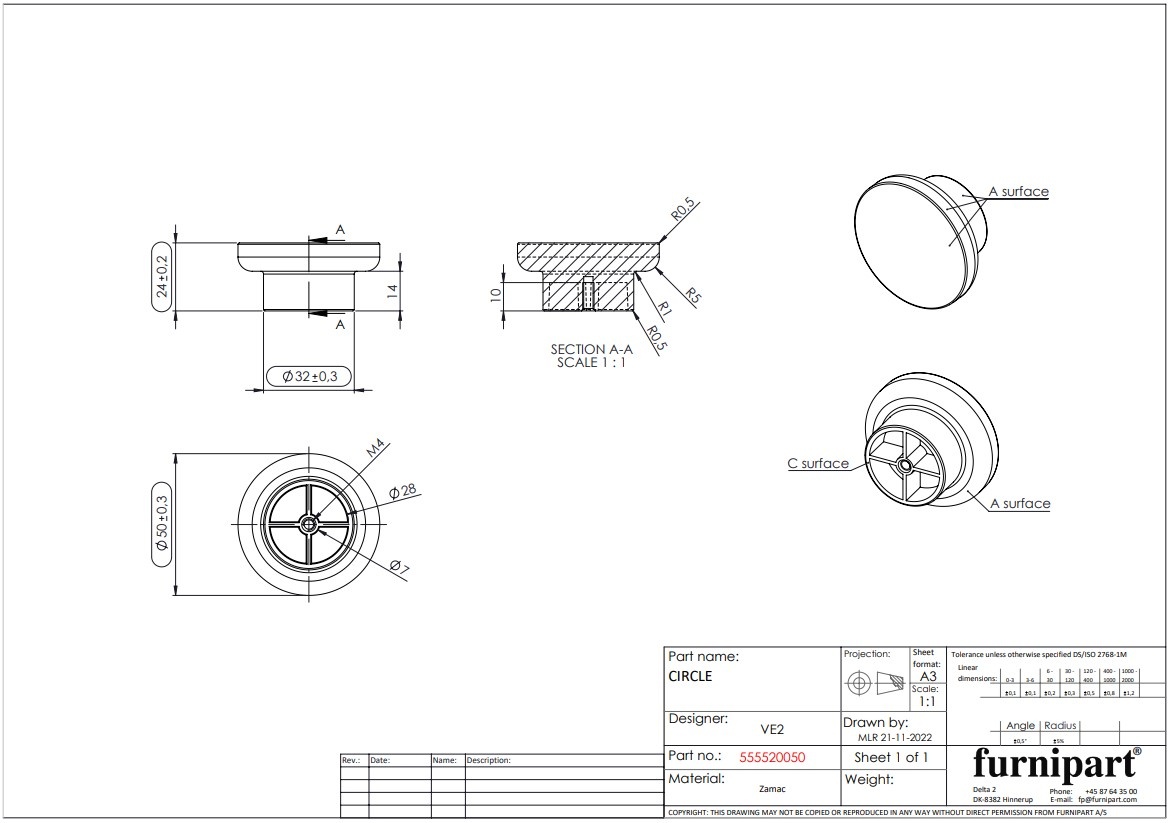 CIRCLE is een eenvoudig ontwerp met een strakke ronde voorkant en een zachte afgeronde achterkant. Een brede selectie van materialen maakt de serie eenvoudige maar unieke knoppen, waardoor je elke kast een individueel karakter kunt geven. De meubelgreep toont zijn schoonheid bij herhaling en benadrukt het karakter van de materialen.