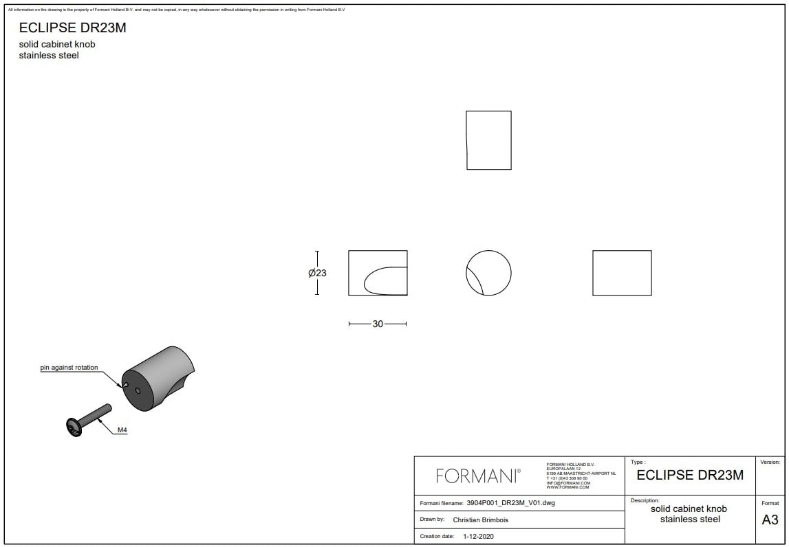 De meubelknop wordt per stuk geleverd inclusief M4 bout voor kasten tot 20 mm dik.