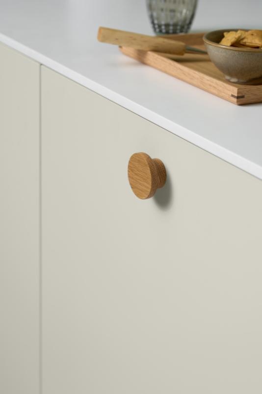 Beschrijving Eikenhouten meubelknop van Furnipart ontworpen door VE2 uitgevoerd in lichte gelakte eik