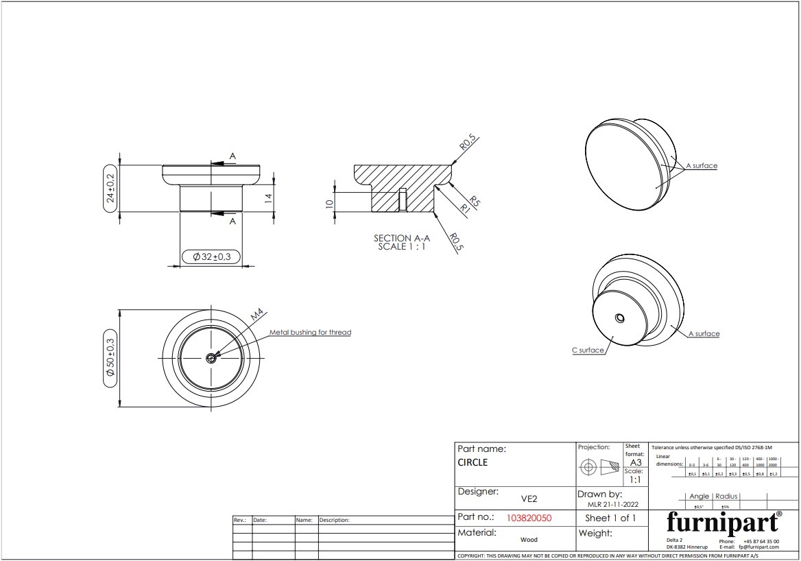 CICRLE van Furnipart is een eenvoudig ontwerp met een strakke ronde voorkant en een zachte afgeronde achterkant die de hand raakt. De serie zijn eenvoudige maar unieke knoppen, waardoor je elke kast een individueel karakter kunt geven. De greep toont zijn schoonheid bij herhaling en benadrukt het karakter van de materialen.
