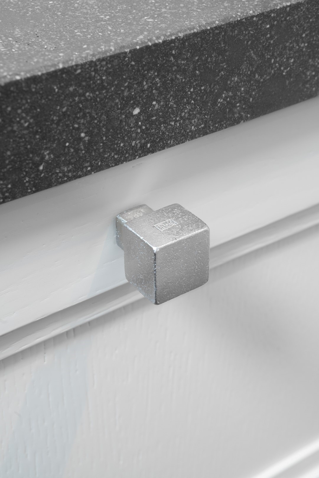 Beschrijving Strakke mat wit bronzen meubelknopje van 20 mm in het vierkant