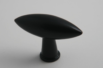 Ovale meubelknop voorzien van een zwarte coating. De knop wordt geborsteld waardoor deze knop zijn mooie mat zwarte uitstraling krijgt en behoud.