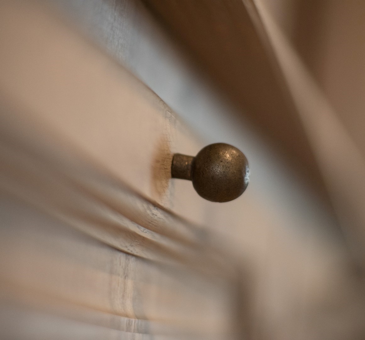 Eenvoudige bolvormige meubelknop in ruw brons van Dauby.