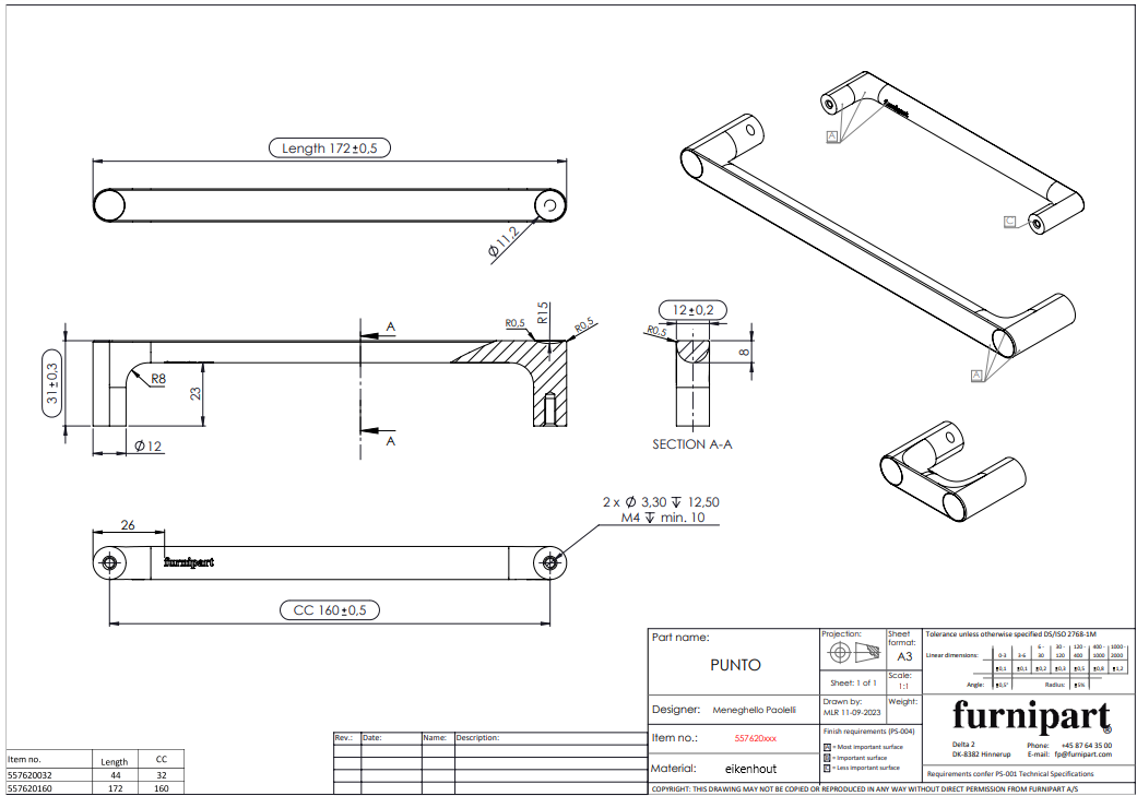 De meubelknop "punto" is een creatie uitgevoerd in gelakt eikenhout van het gerenommeerde designstudio Meneghello Paolelli Associati gevestigd in Milaan.