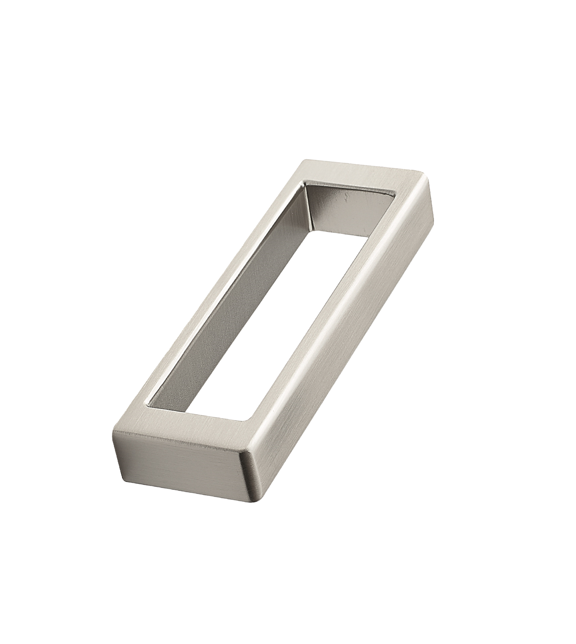 Beschrijving Meubelgreep CUBICO van Furnipart met een asmaat van 96 mm en totale breedte van 105 mm met RVS uiterlijk