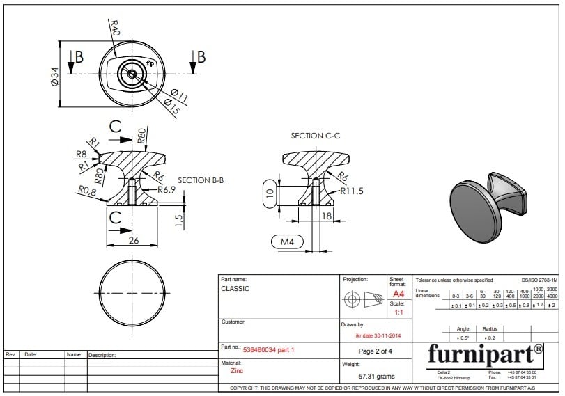 Beschrijving Ronde Meubelknop CLASSIC van Furnipart ontworpen door Kamper Form uitgevoerd in antiek grijs