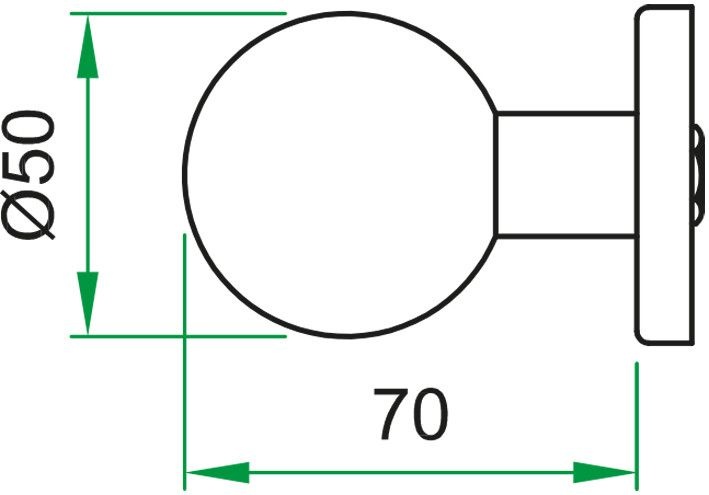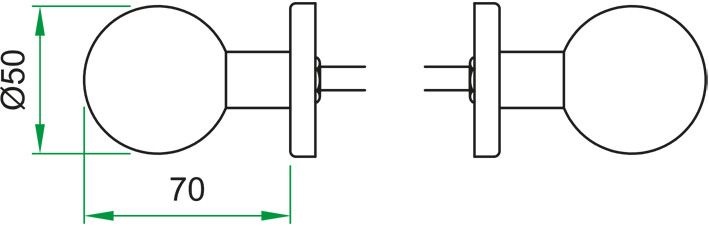 Beschrijving Rechte zwarte bolknoppen Ø 50mm vast op rozet zonder nokken met Cradle2Cradle, EN1906-klasse 3, EN1634 normering