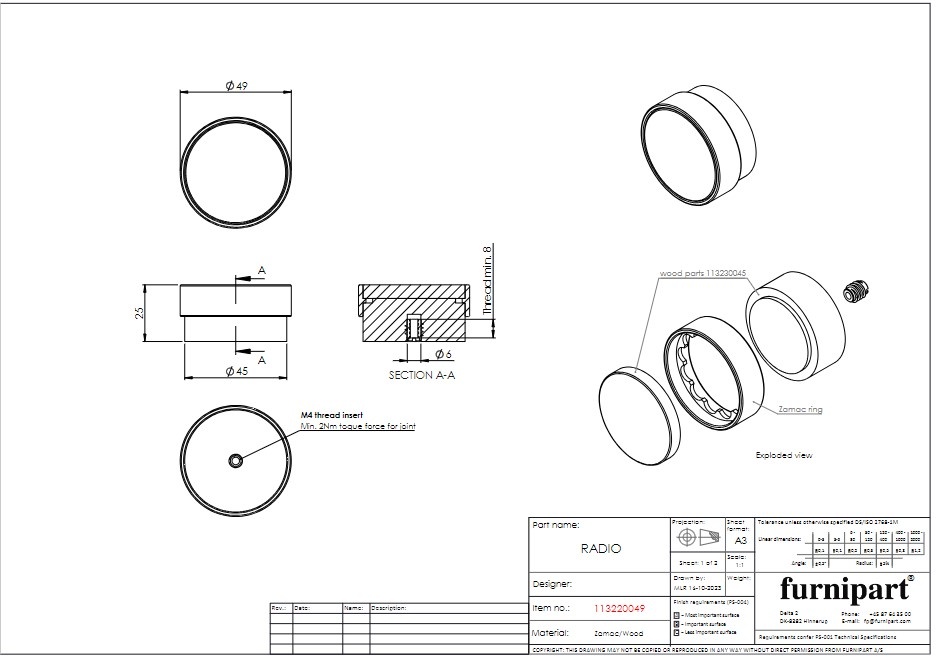 Beschrijving Mooie meubelknoppen RADIO van hout met metaal leverbaar in verschillende kleuren combinaties