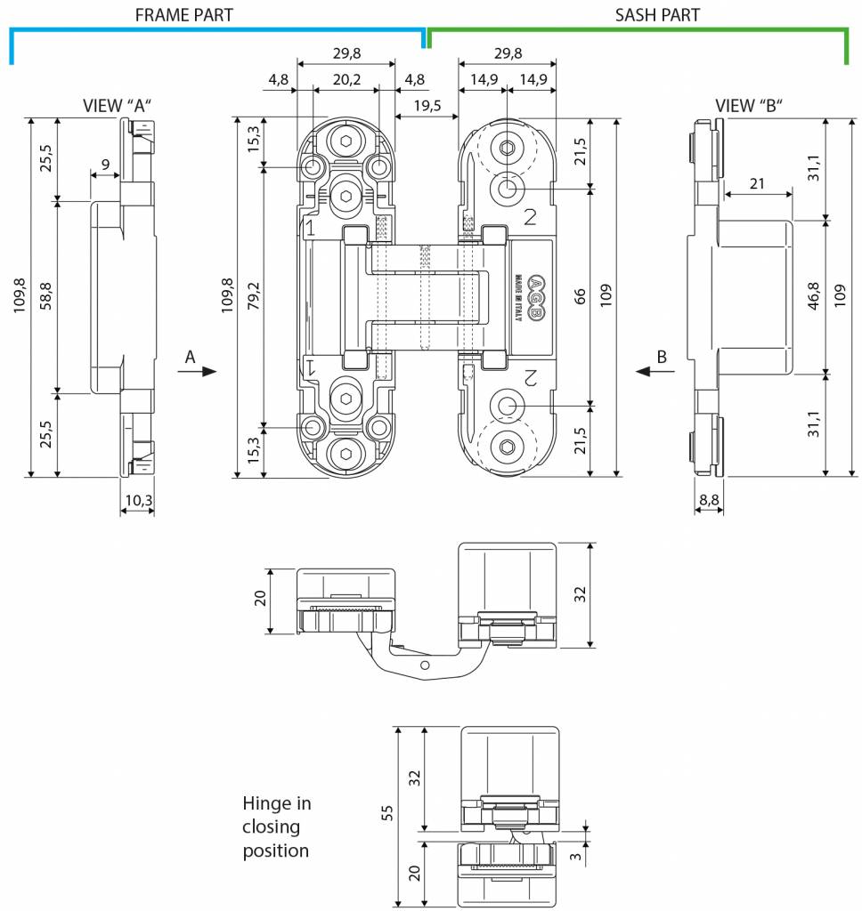 Beschrijving Onzichtbaar 3D scharnier AGB eclipse 2 RVS