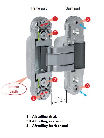 Deze onzichtbare scharnieren, ook wel 3D scharnieren genoemd, kunnen helemaal in de deur verwerkt worden. Hierdoor zijn er geen scharnieren zichtbaar is als de deur dicht is.