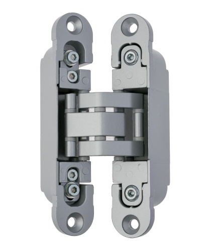 De mat zilveren 3D-scharnieren zijn verkrijgbaar met een breedte van 23mm en 30mm. Dit model bedraagt de 23mm versie.