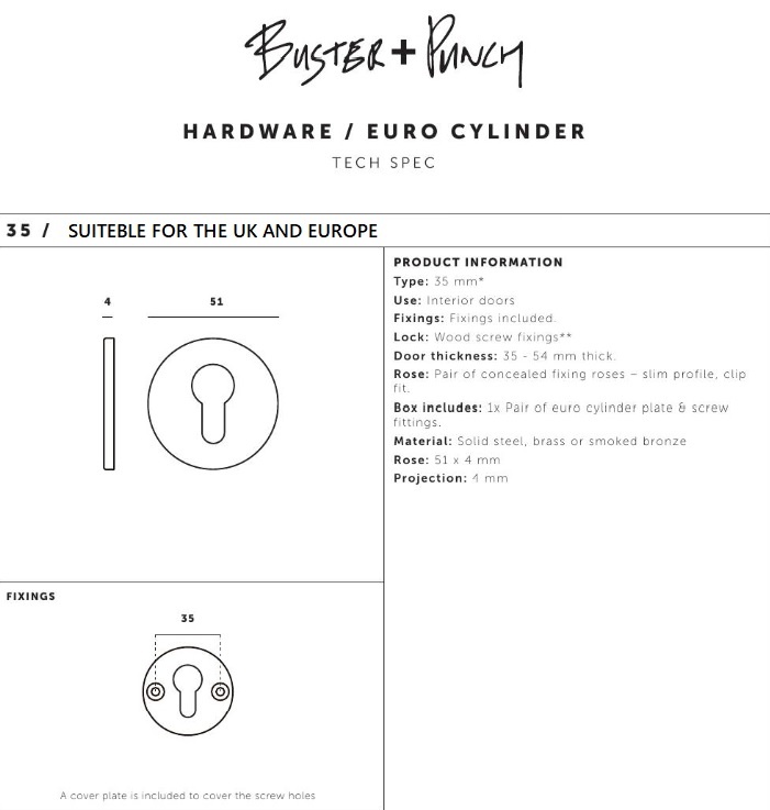 Deze cilinderrozetten werken op alle binnendeuren en kunnen gecombineerd worden met de bijpassende deurklinken (Linear serie) van Buster&Punch (zie gerelateerde producten hieronder).