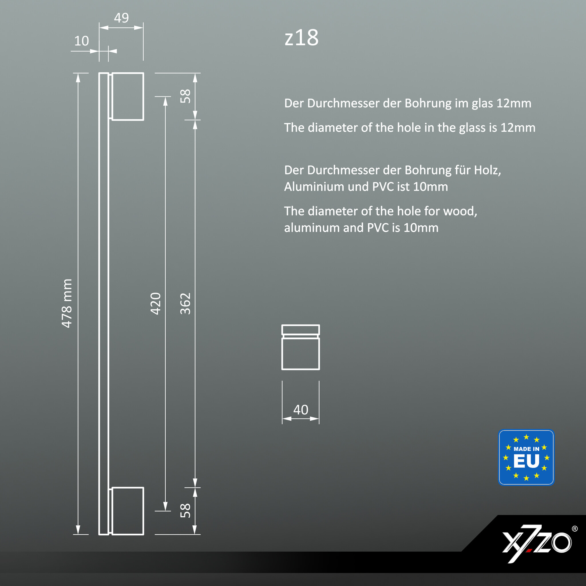 Paar zwarte design deurgrepen Z18 uit massief RVS - 40/420/480mm
