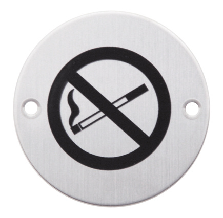 Dit ronde pictogram uit geborsteld RVS geeft duidelijk aan dat in deze ruimte niet gerookt mag worden.