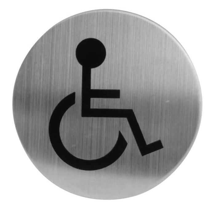Beschrijving Intersteel Pictogram voor een toilet voor mindervalide zelfklevend rond rvs geborsteld