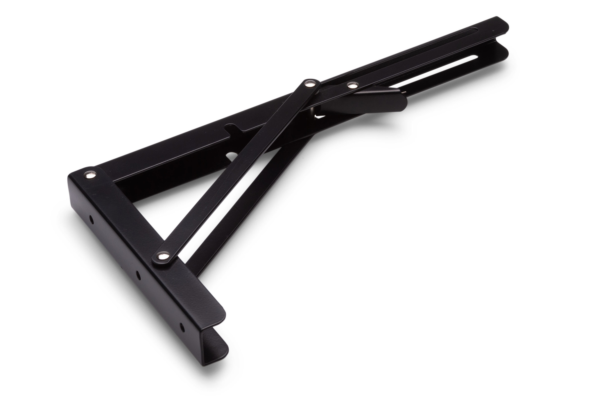 Deze zwarte stalen automatisch vouwbare plankdrager wordt per stuk geleverd exclusief bevestigingsmateriaal.