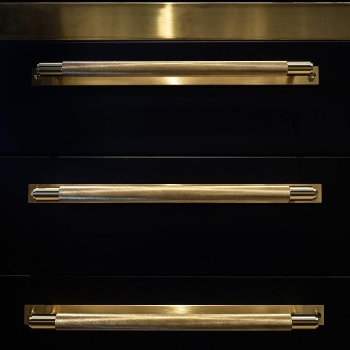 Deze messing meubelgrepen hebben het kenmerkende diamantgeslepen kruispatroon van Buster+Punch en zijn met de hand verfijnd. Ze passen geweldig op kastdeuren, kledingkasten, keukenblokken, apparaten en lange lades.