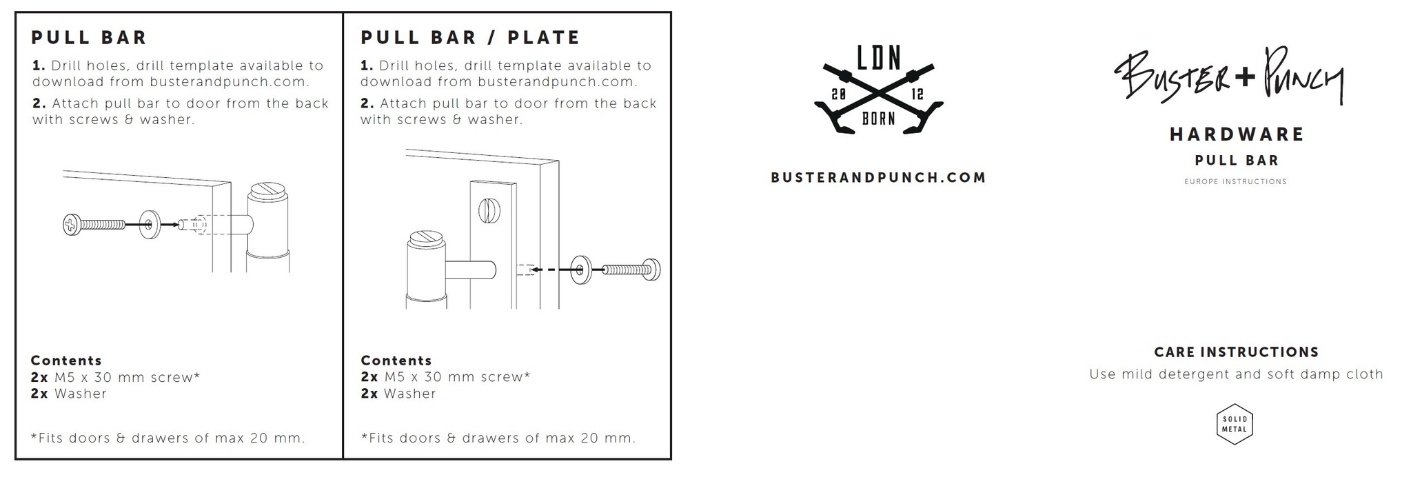 Deze zwarte Pull Bars op plaat worden per stuk geleverd inclusief bevestigingsmaterialen (2 x M5 x 30mm). Ze dienen door-en-door bevestigd te worden op de asmaten 160mm, 260mm of 360mm.