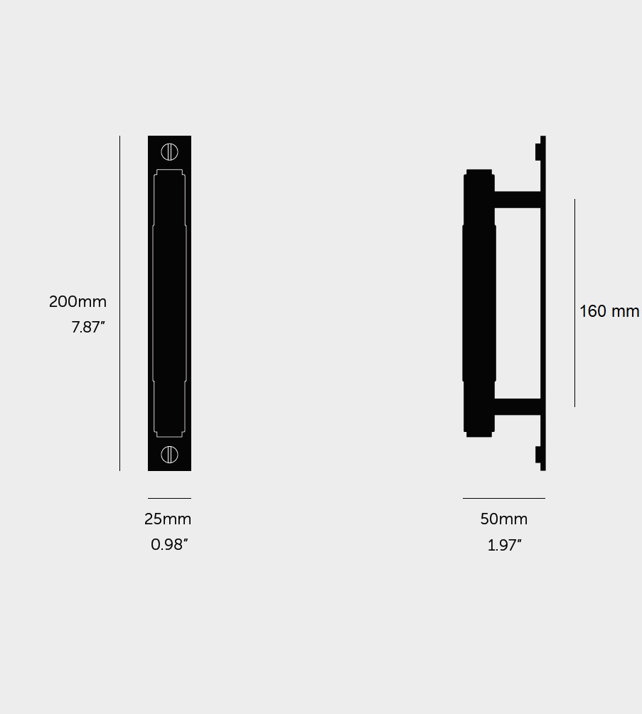De zwarte Pull Bar heeft een rechthoekige achterplaat gemaakt van massief zwart geanodiseerd metaal en afgewerkt met zwart metalen muntschroeven.