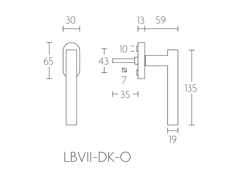 De raamkruk op een ovaal rozet van 30x65 mm en 13 mm dik wordt per stuk geleverd inclusief stift 7x7 en bevestigingsmateriaal.