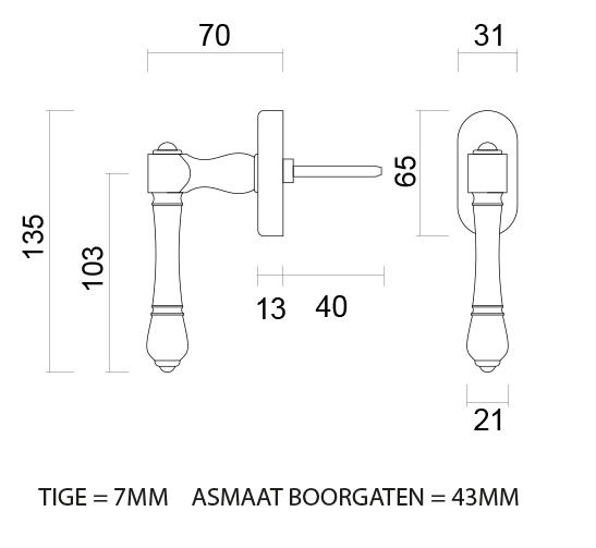 De raamkruk wordt geleverd inclusief bevestigingsmaterialen en bijhorende stift van 7x7x40mm.