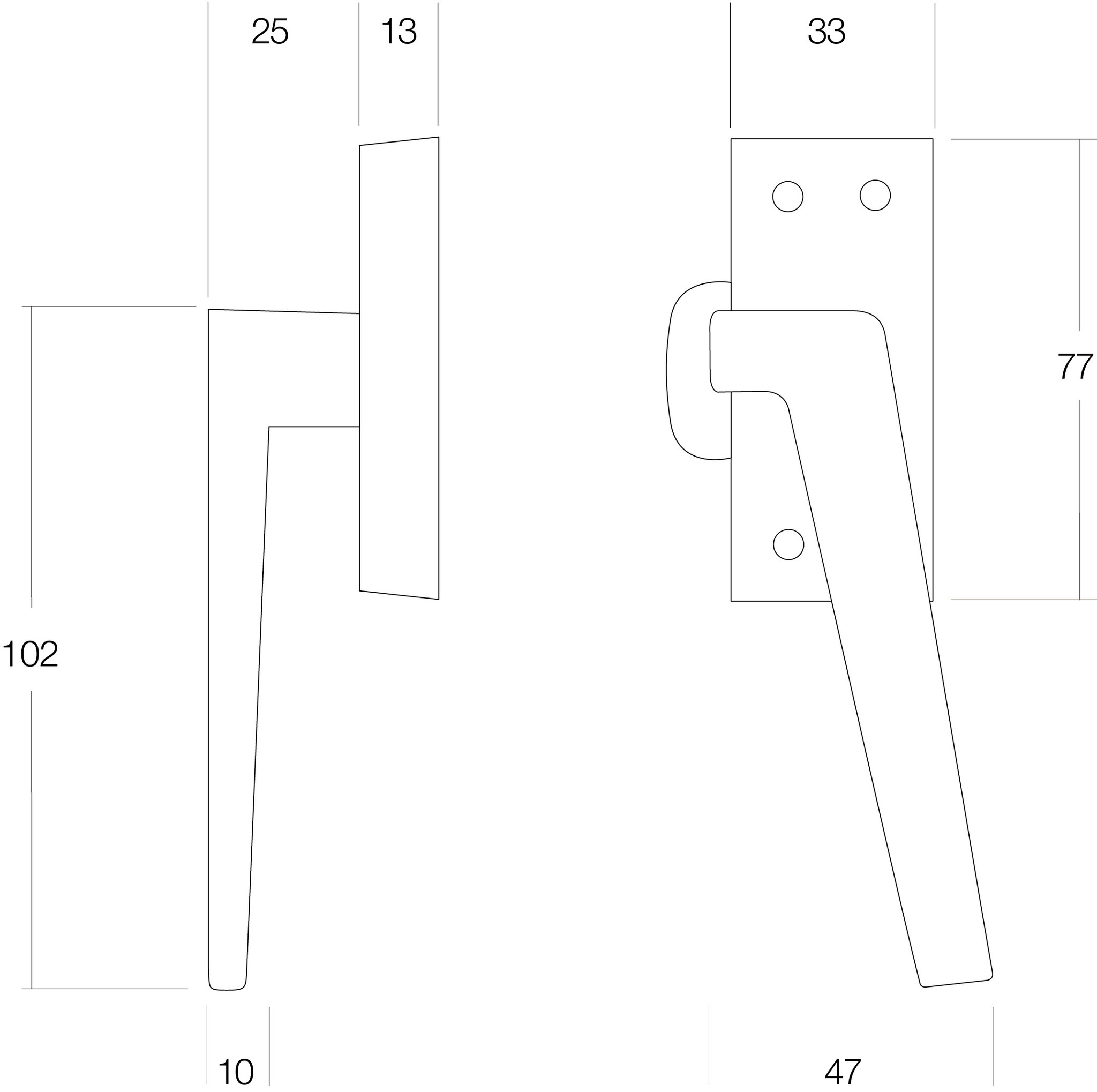 Intersteel raamkruk Recht met nok rechts mat Nikkel