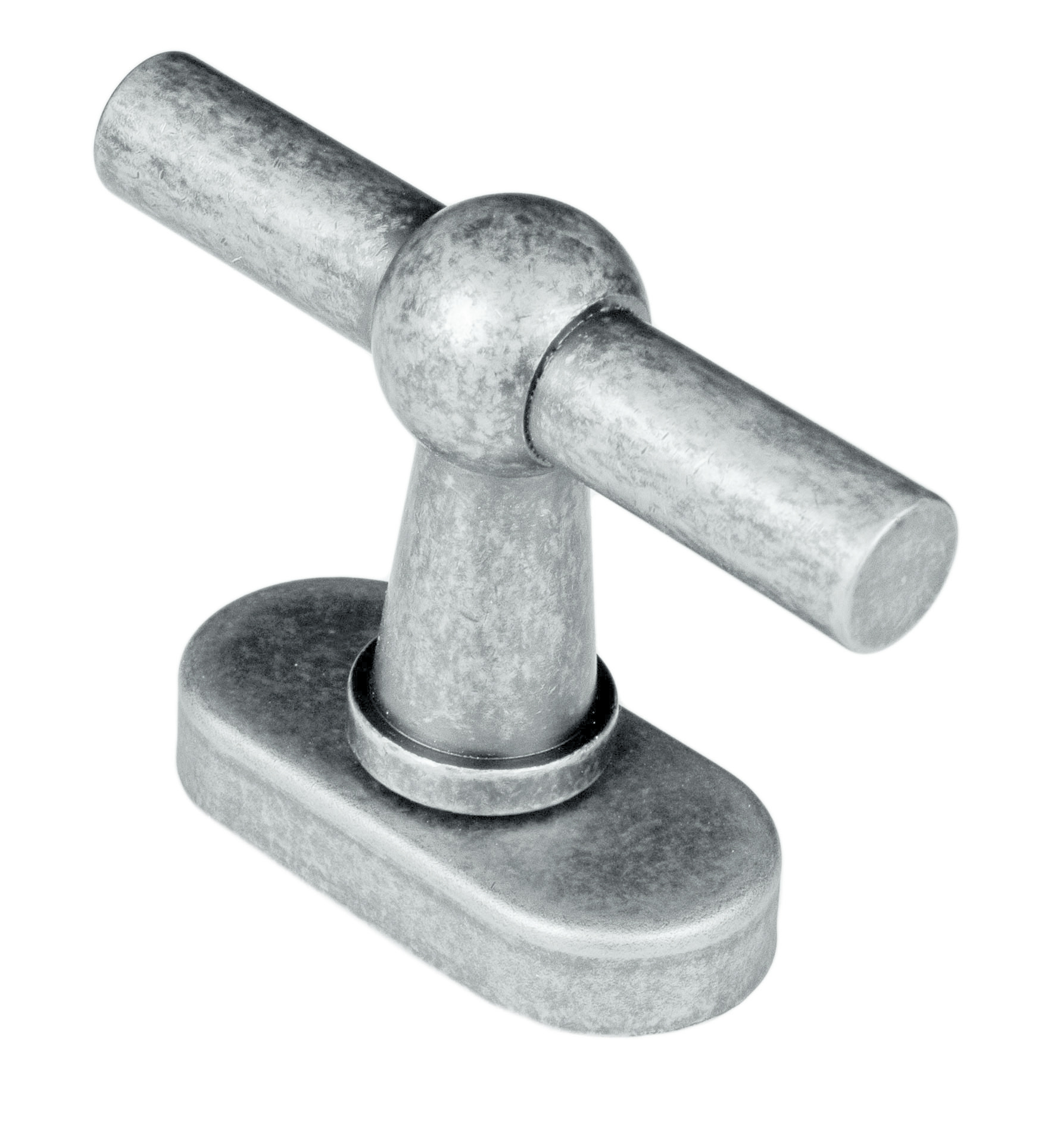 Beschrijving Raamkruk Petra in oud zilver met T-vorm
