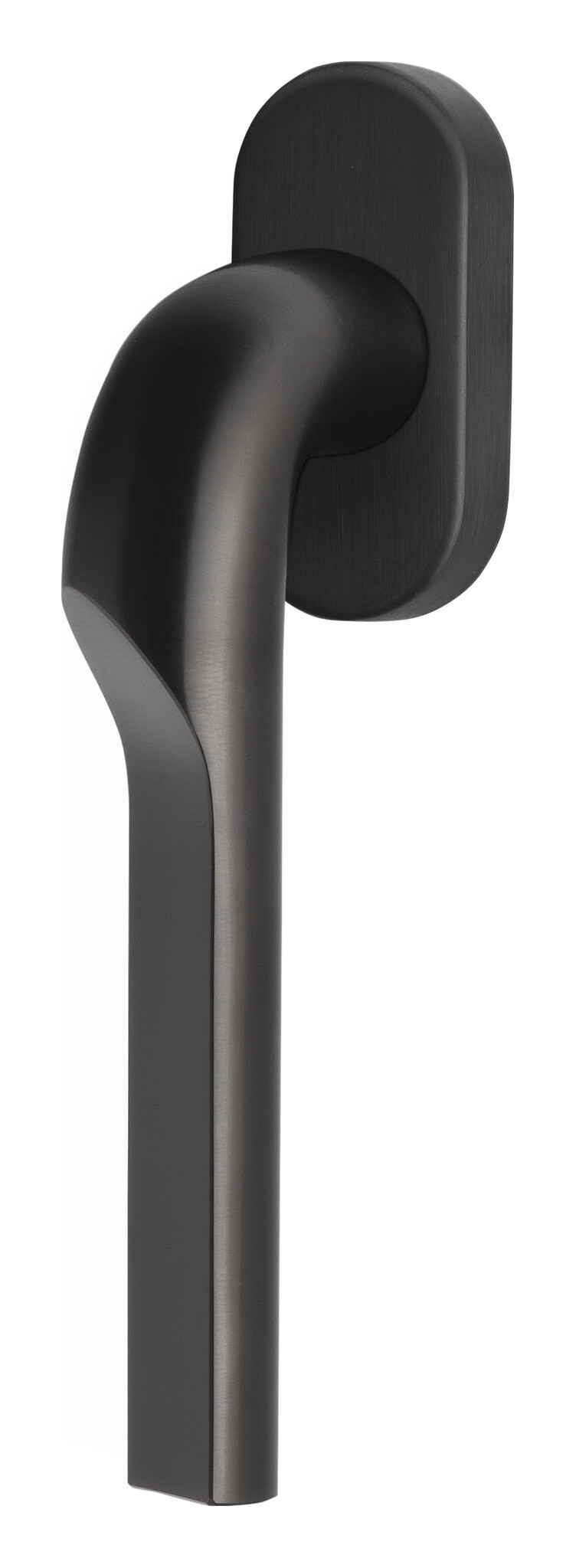 De mat zwarte raamkruk staat op een ovaal rozet van 64x30 mm dat 13 mm dik is. De L-Vormige greep heeft een lengte van 138 mm. Als basis heeft deze raamkruk RVS waarna de raamkruk wordt afgewerkt met een sterke mat zwarte PVD coating.
