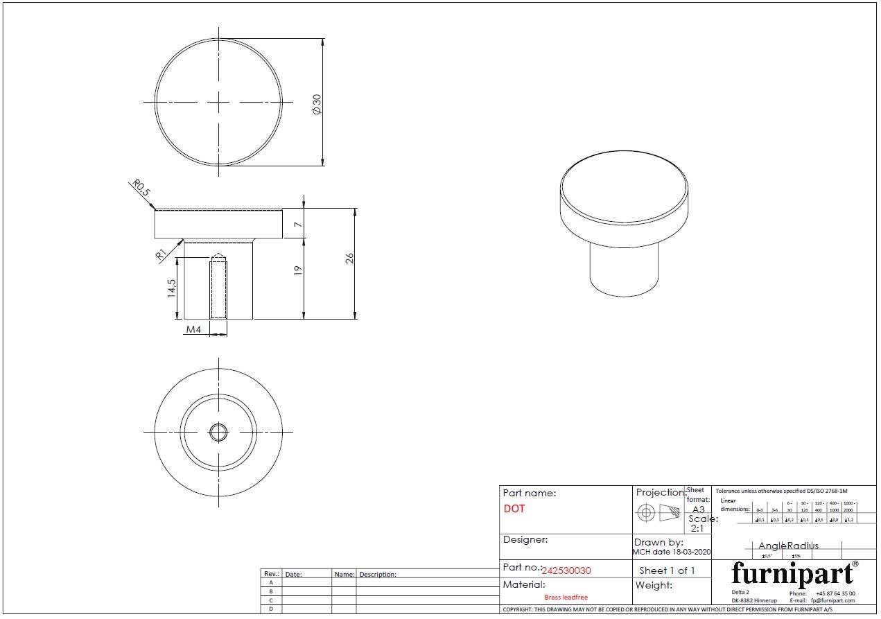 DOT is een minimalistische meubelknop van het gerenommeerde merk Furnipart, ontworpen door de Deense designer Hans Sandgren Jakobsen. Het ontwerp bestaat uit twee perfect geproportioneerde cilinders, waar vorm en functionaliteit harmonieus samenkomen.