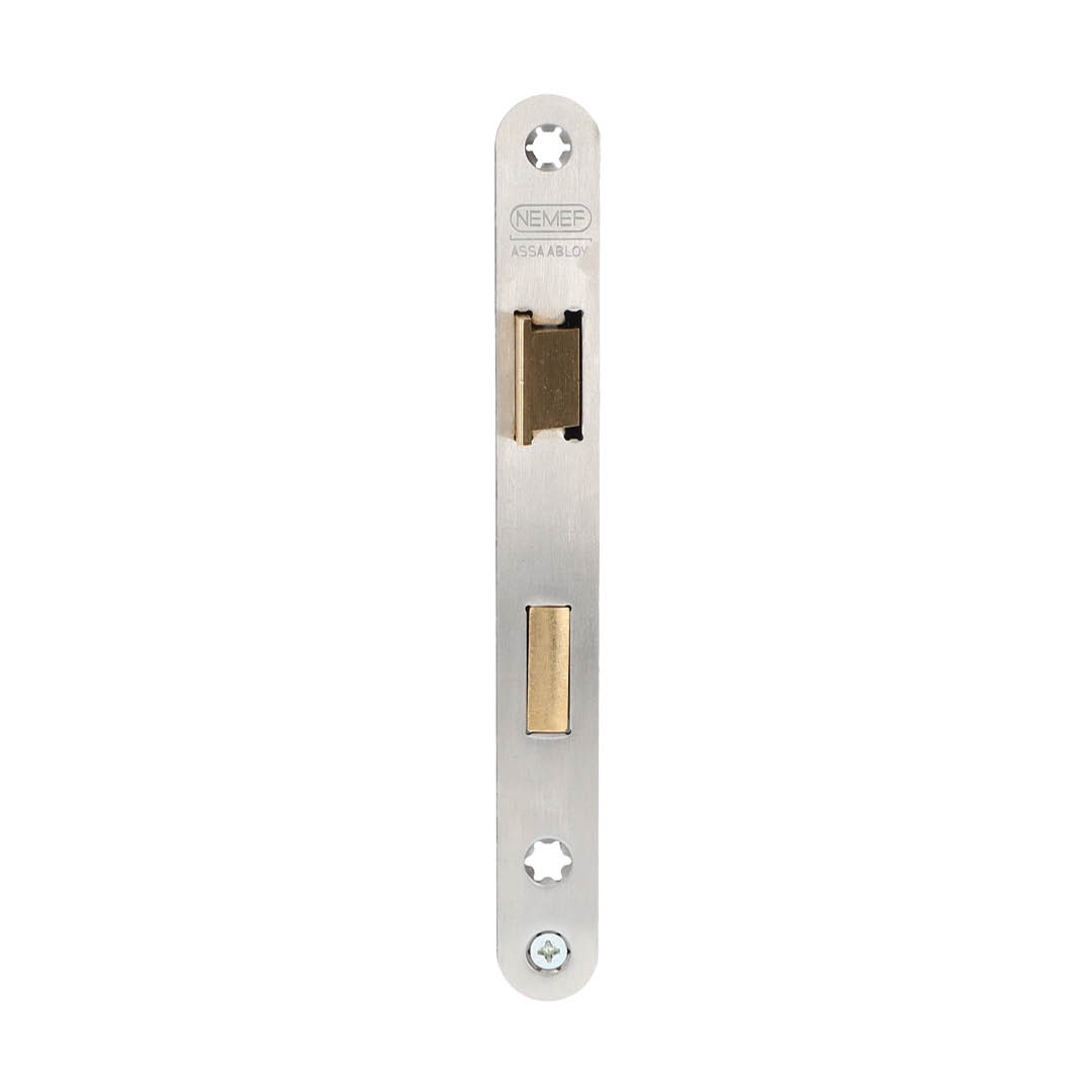 Beschrijving RVS cilinderslot NEMEF 1269/17-50-55 met afgeronde voorplaat en rechte sluitplaat uit verzinkt staal