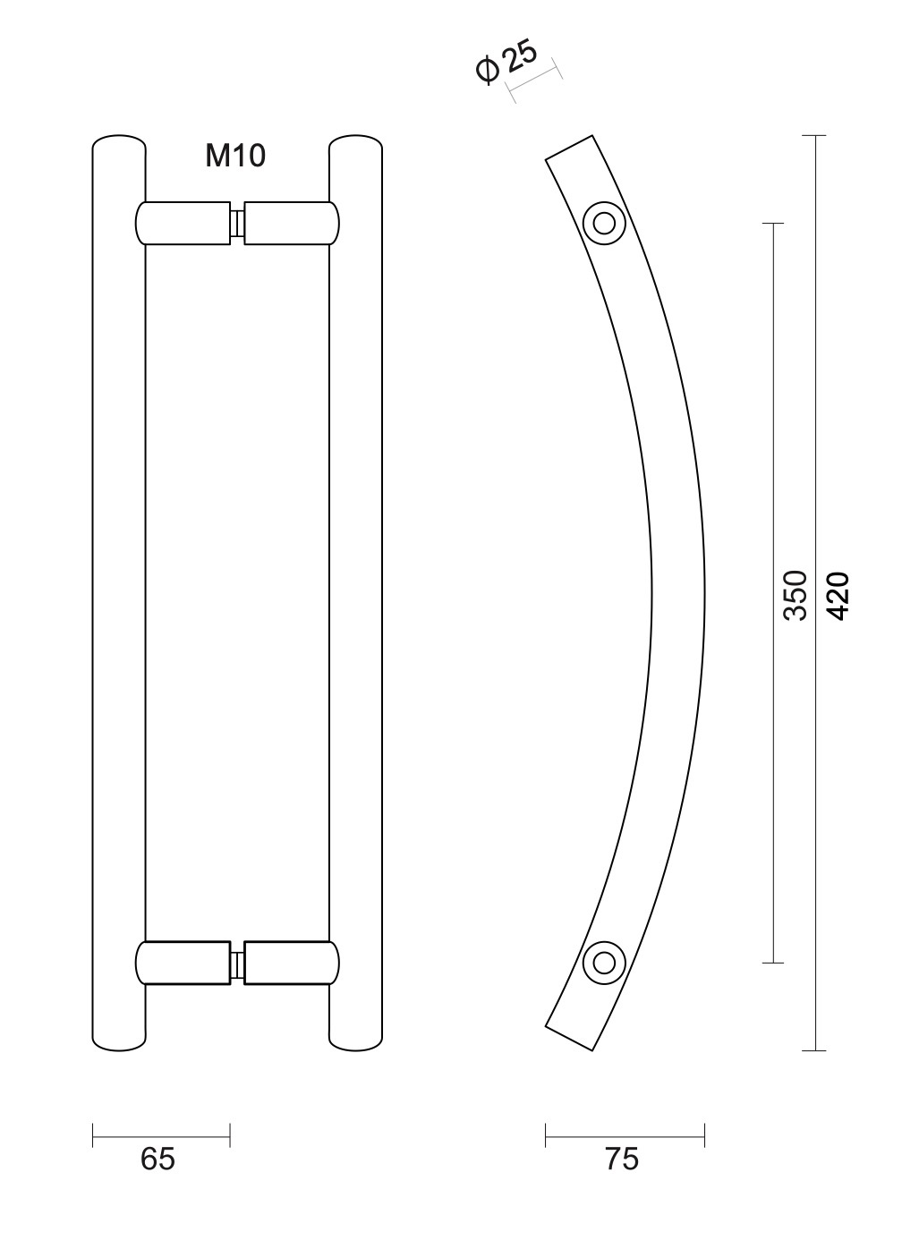 Beschrijving Mooie gebogen deurgrepen T- model met een strakke moderne uitstraling die ook geschikt zijn voor buiten uitgevoerd in RVS voor op glazen deuren