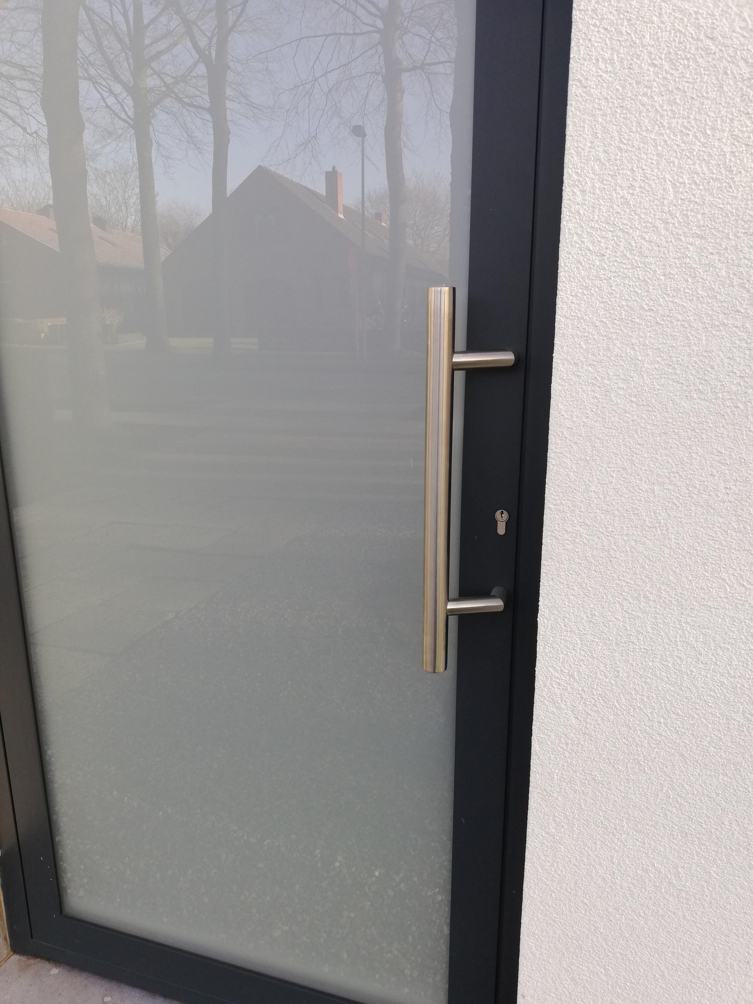 Deze RVS deurgreep met een schuine hoek wordt veel gebruikt op buitendeuren.