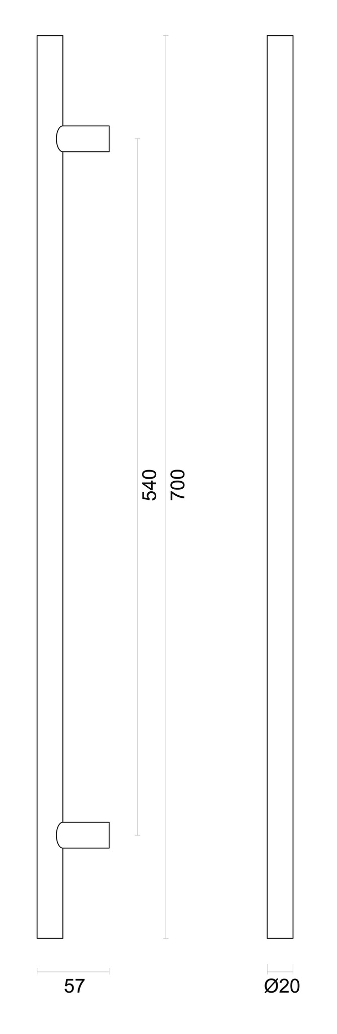 Deurgreep T 20/540/700 - RVS - blinde bevestiging