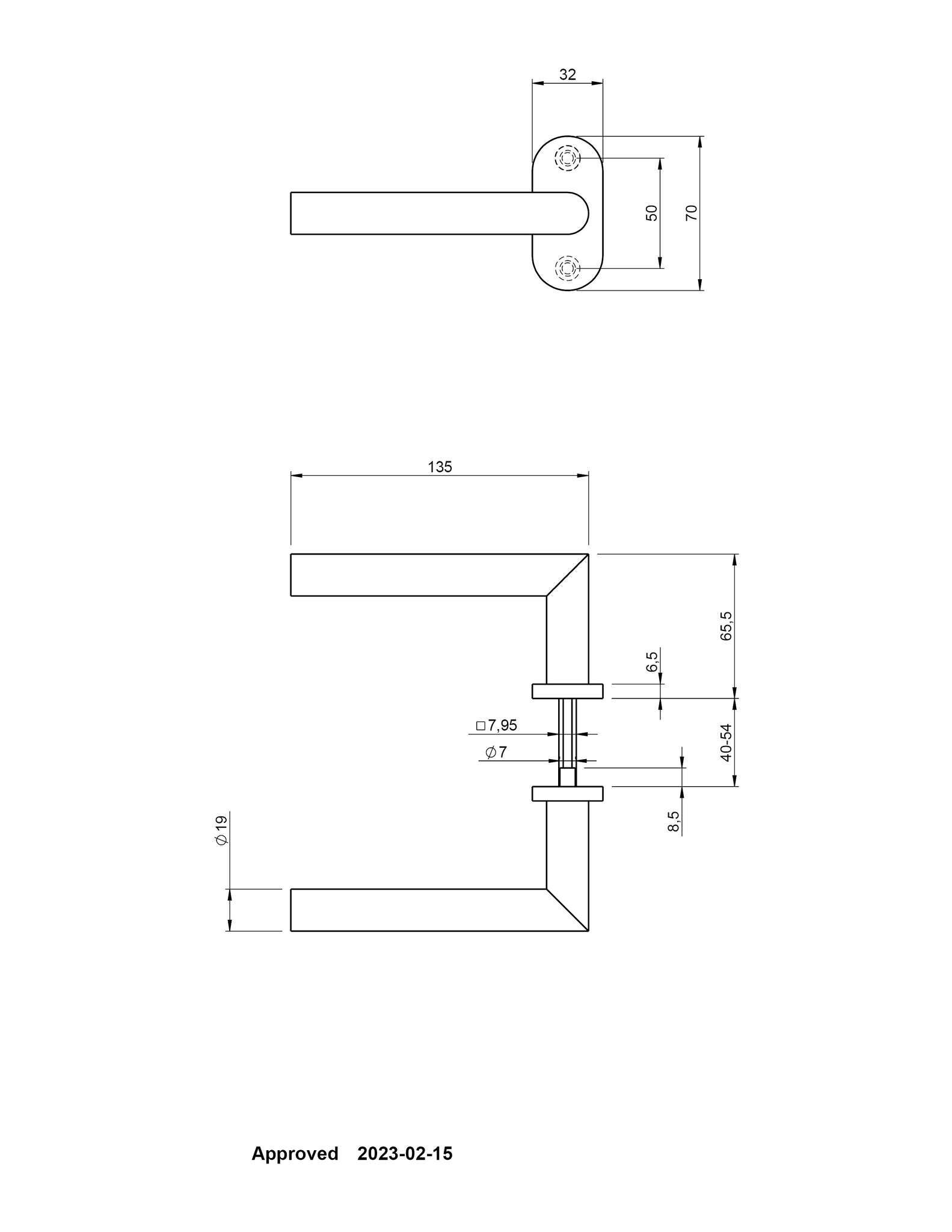 Deurklinken ASSA ABLOY L-90° TONIC-LINE op ovaal rozet 6,5mm - RVS