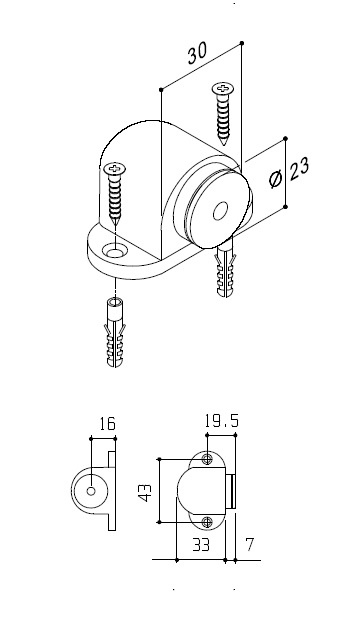 Deze magnetische deurstop wordt per stuk geleverd inclusief bevestigingsmateriaal (pluggen en schroeven 25mm).