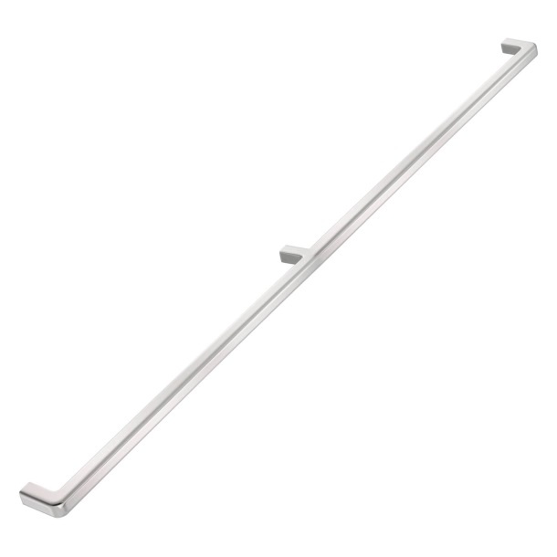 De lange meubelgreep met drie bevestigingspunten is gemaakt uit aluminium en wordt voorzien van een RVS eindcoating
