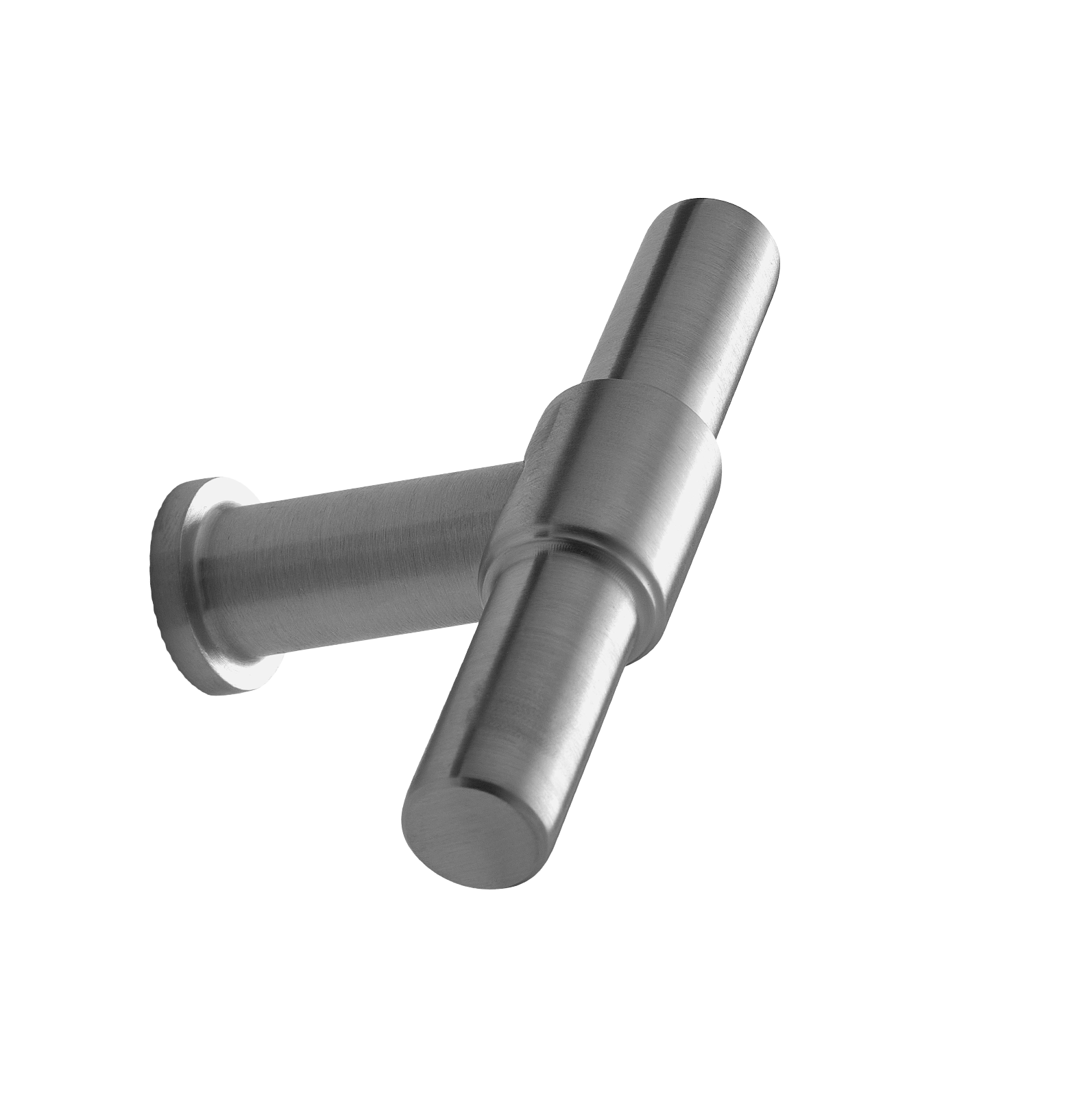 Deze meubelknop T-model is gemaakt uit roest vast staal. Als eindbewerking wordt de knop geborsteld waardoor hij zijn zijdeachtig uiterlijke krijgt.