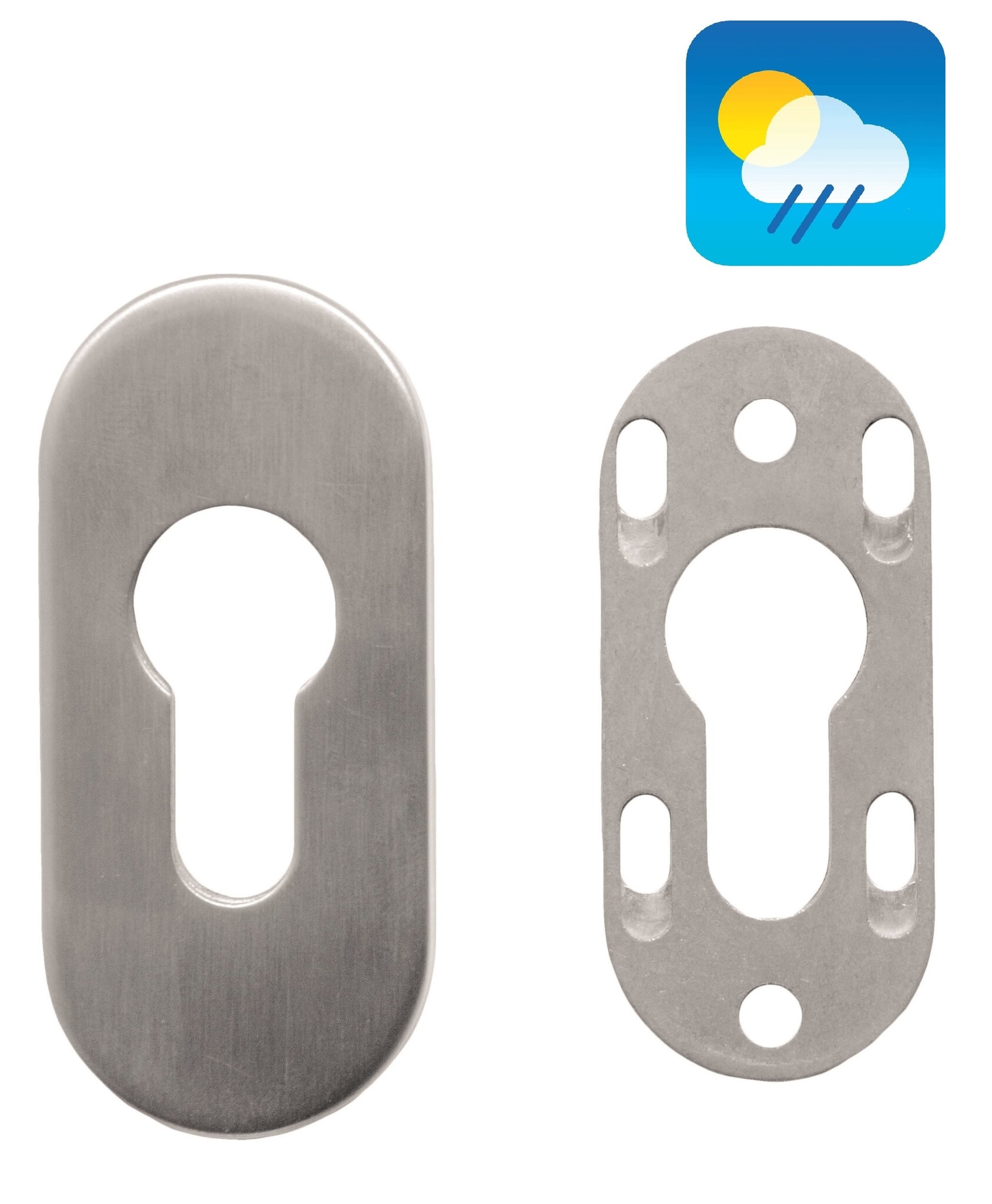 Veiligheidscilinderplaatje in ovale uitvoering, gemaakt uit RVS met behoud van de eigen RVS look.