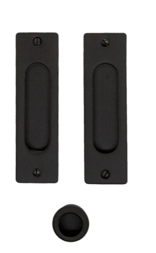 Mooie set rechthoekige schuifdeurkommen met ovaal binnenwerk gemaakt uit messing en daarna voorzien van een sterke zwarte coating.