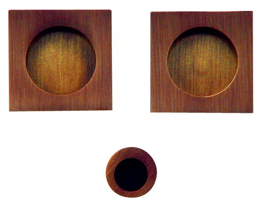 Mooie set vierkante schuifdeurkommen met een rond binnenwerk gemaakt uit messing en daarna voorzien van een sterke bronzen coating.