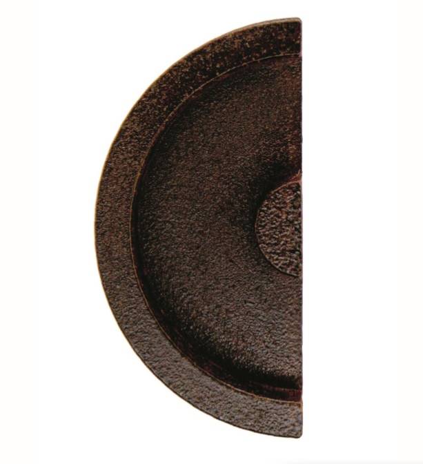 Massieve RVS plus schuifdeurkom halve maan in roestkleurige uitvoering voor een houten schuifdeur.