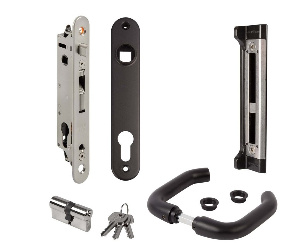 Pakket FIFTYSET-50S-BA voor metalen/aluminium/PVC tuinpoorten-Cilinder 60mm-Zwart