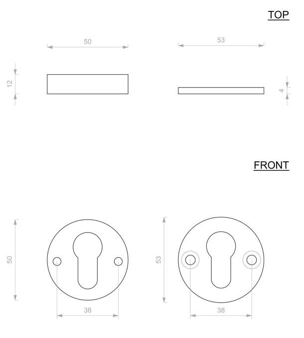 De veiligheids cylinderplaatjes hebben een diameter van 50mm en worden geleverd inclusief bevestigingsmaterialen (geschikt voor deurdikte tot 85mm).