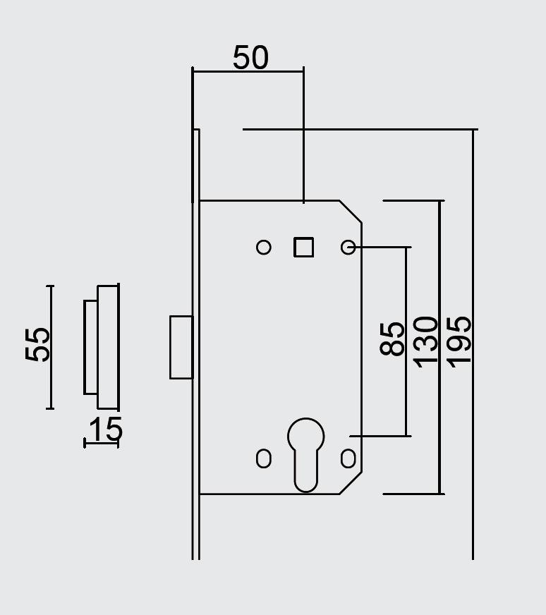 Deze magneetsloten hebben afgeronde voorplaat van 195x18mm. De doorn bedraagt 50mm.