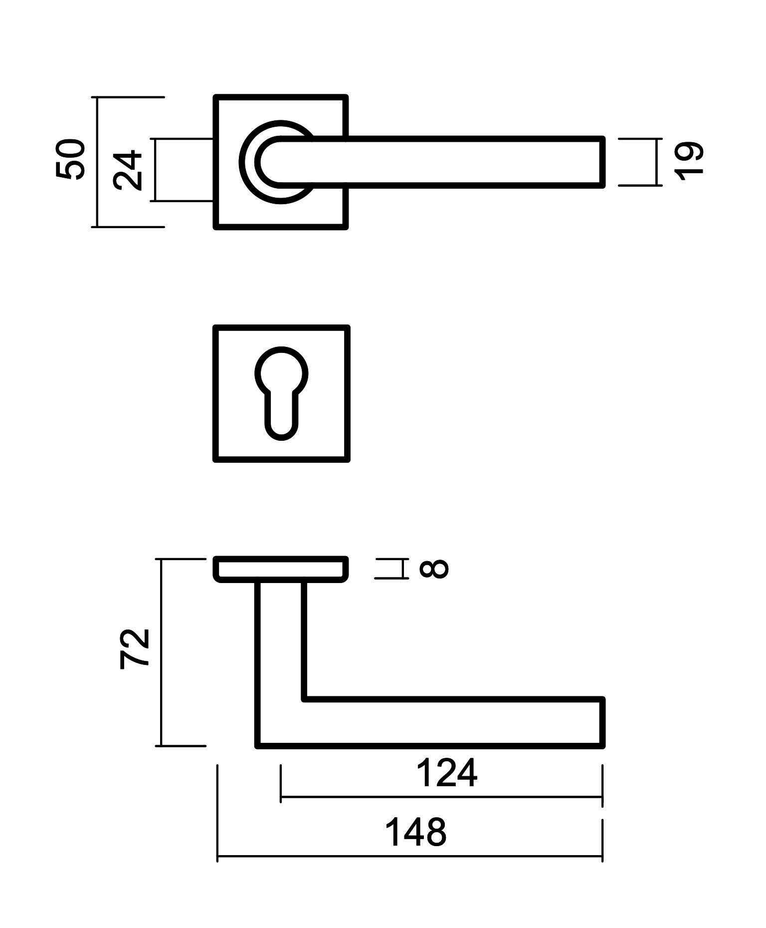 Beschrijving Exclusieve ronde zwarte deurklinken SQUARE I SHAPE 19mm op een vierkant rozet gemaakt uit RVS verkrijgbaar in 4 varianten