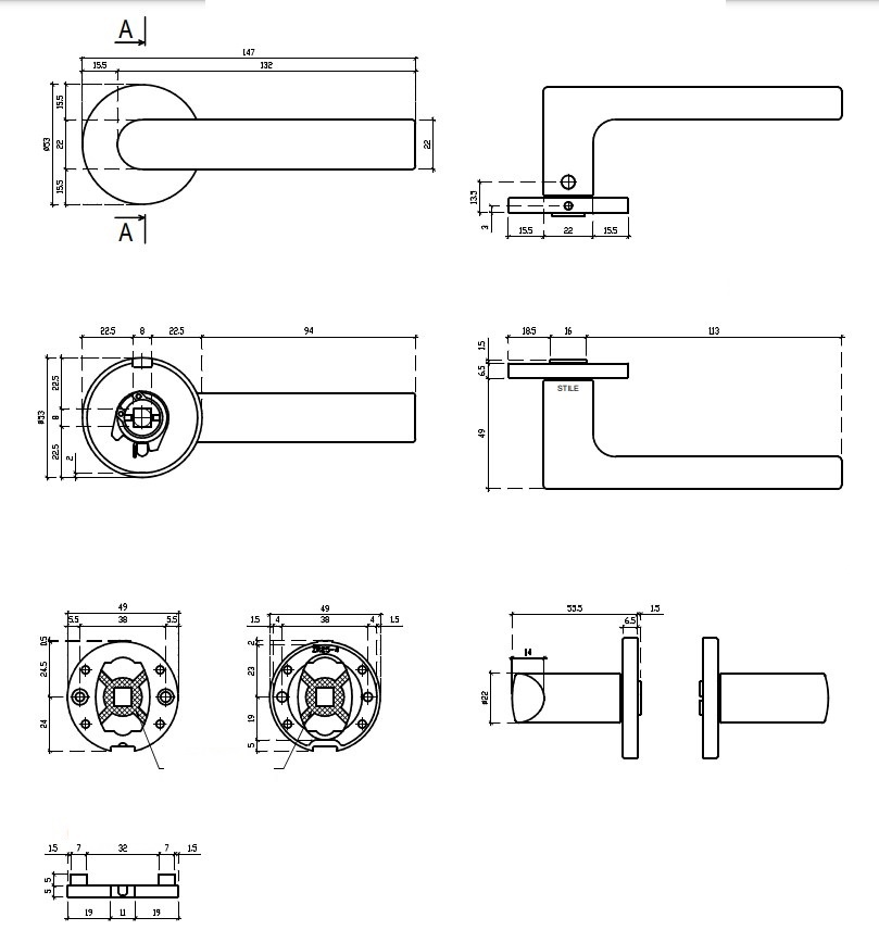 - 2 deurklinken - links en rechts (met 'STILE' logo)