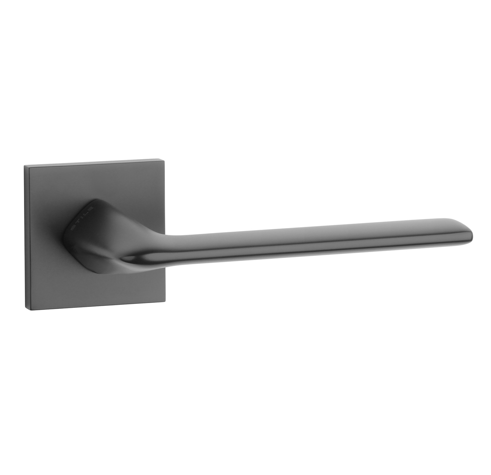 Beschrijving Deurklinken Toba op vierkante rozetten 53x53x7mm uitgevoerd in mat zwart - STILE