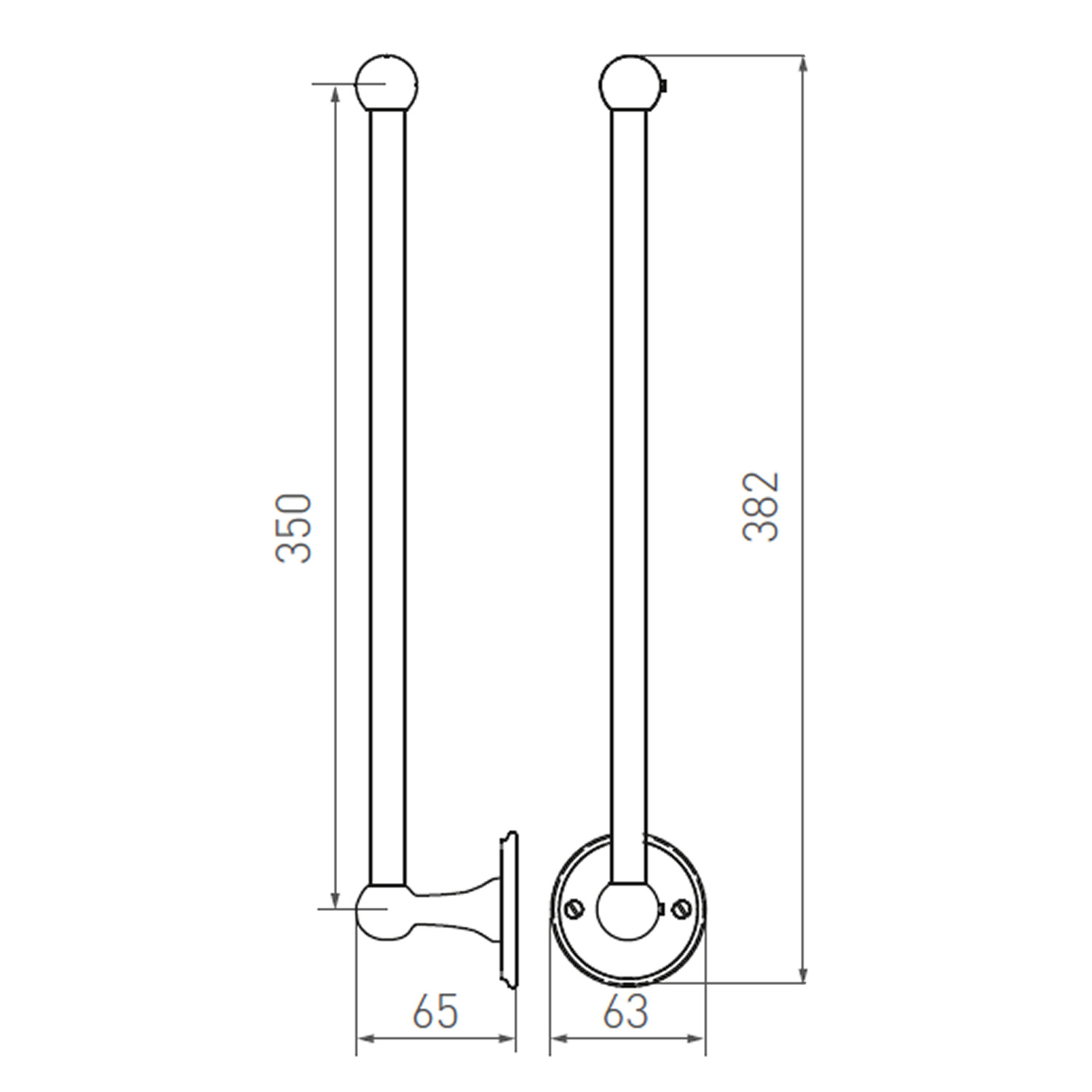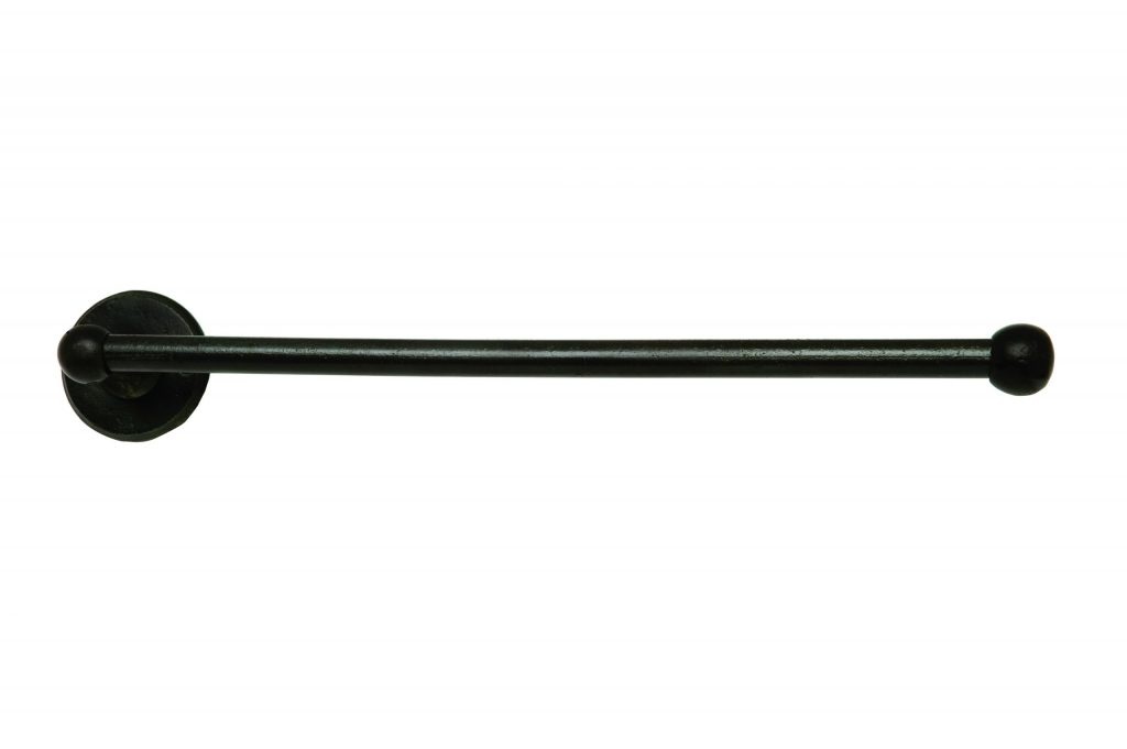 Beschrijving WC-ROL HOUDER ENKEL VEROUDERD IJZER – ZWART 350mm ‘rechts/right” ronde uitvoering